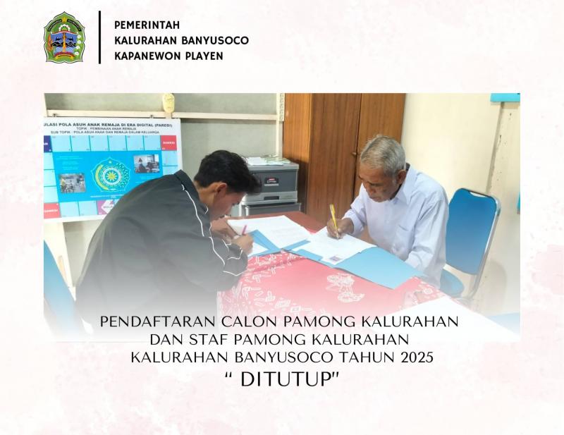 - Pemerintah Kalurahan Banyusoco Segera Membuka Pendaftaran Calon Pamong dan Staf Baru